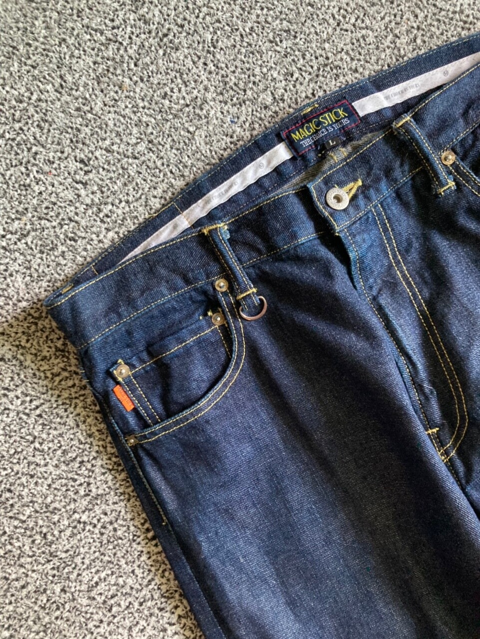 일본 브랜드 매직스틱의 데님 팬츠입니다.